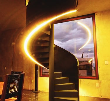 Casablanca revela su carácter desde los detalles. La cochera con puerta de autor, diseñada como pieza escultórica, recibe hasta tres vehículos. La alberca climatizada de diseño, con niveles diferenciados y zonas de sol y sombra, integra iluminación arquitectónica que transforma cada atardecer en una escena de lujo privado. La terraza panorámica, con su mesa de eucalipto para doce personas, camastros y jardín de especies endémicas, ofrece un espacio abierto y puro al aire libre.