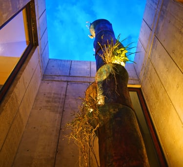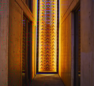 Tranquilidad en movimiento; la serenidad fluye entre muros y reflejos.