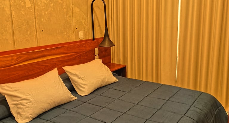 Texturas y tonos cálidos en una habitación que respira carácter y quietud.