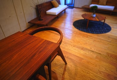 Bajo la luz de la tarde, la madera de Machiche se vuelve más cálida, al amanecer, refleja el aire seco del valle. Su superficie, ligeramente porosa, guarda la textura de un material que envejece con elegancia y que, al tacto, conserva una tibieza que contrasta con el concreto frío.