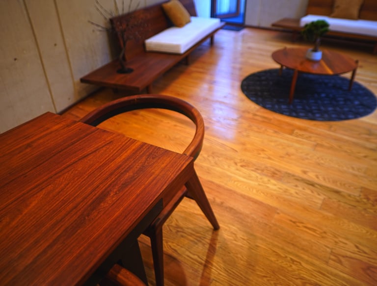 No hay barnices brillantes ni simulaciones. La madera respira y cambia de tono con el paso del día.